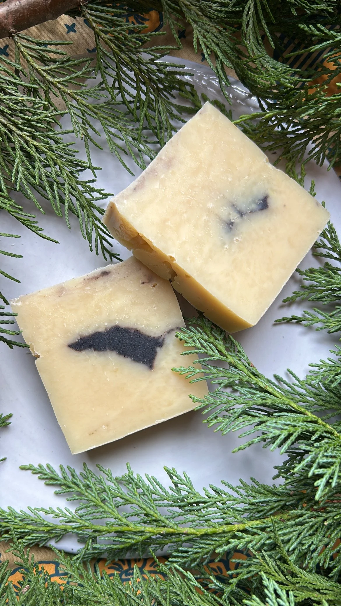 Scented with a spicy and uplifting blend of myrrh, cedarwood, cinnamon, bergamot, lemon and clove essential oils. Naturally colored with alkanet root which can soothe skin inflammation & eczema, promote even skin tone and reduce scar appearance due to being rich in antioxidants.